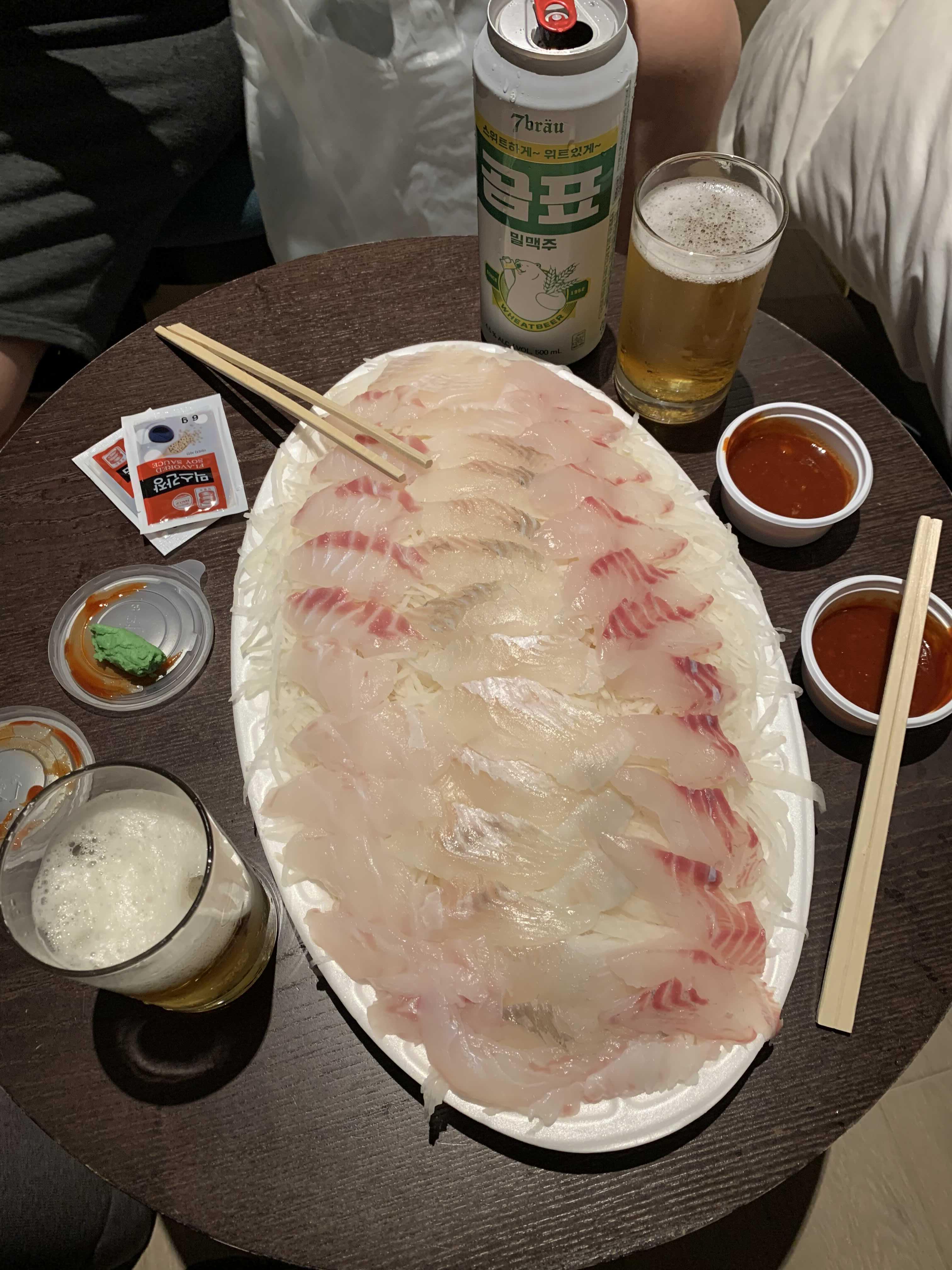 오빠가 동문시장에서 회를 떠오기로 했다.