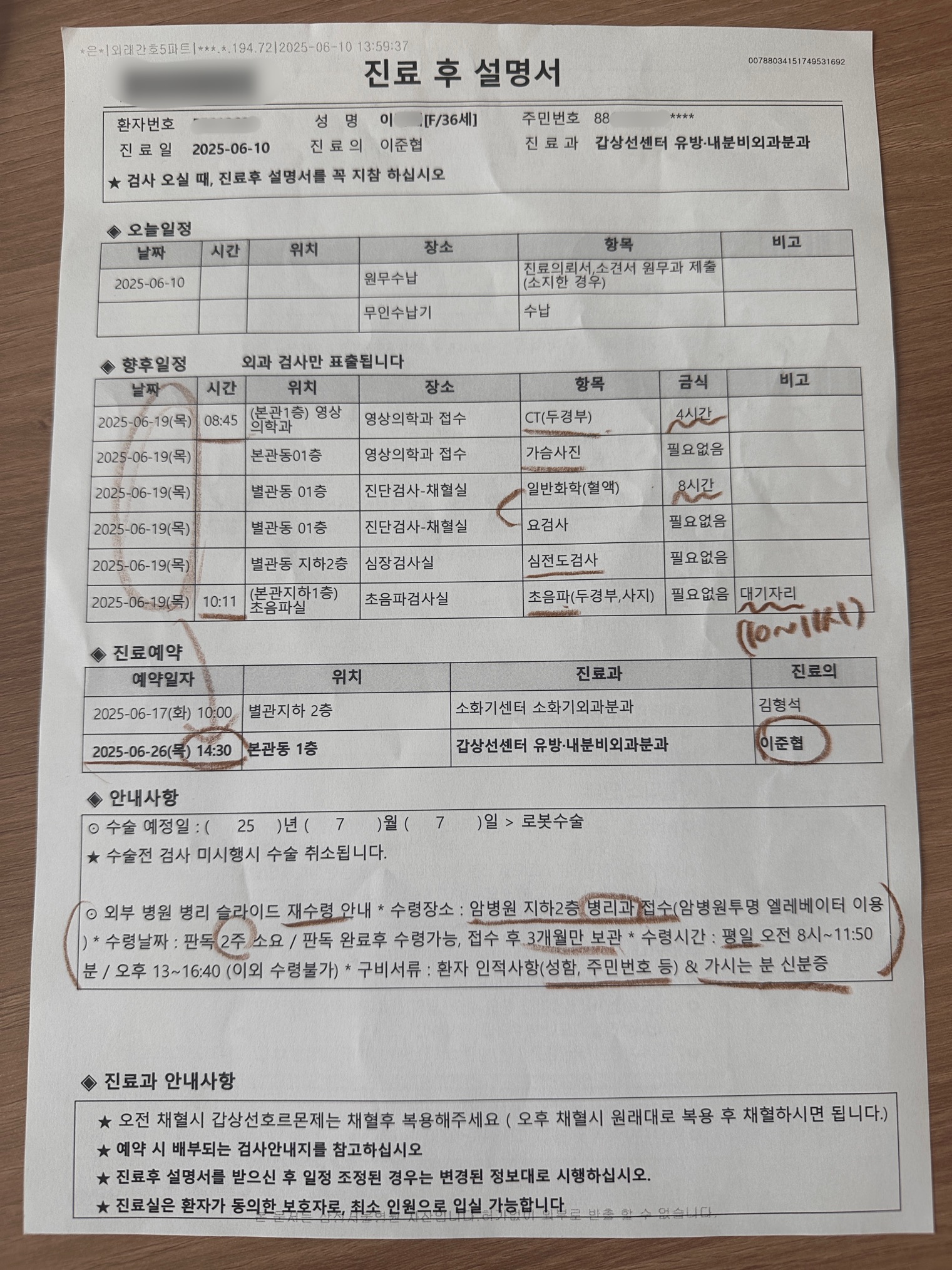 다행히(?) 2주 뒤 6월 26일에 수술 전 외래진료가 있으니 그 때 받아가면 되니 오히려 좋다(?)고 생각했다.